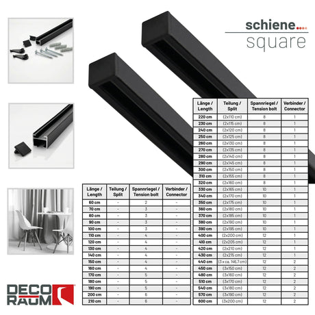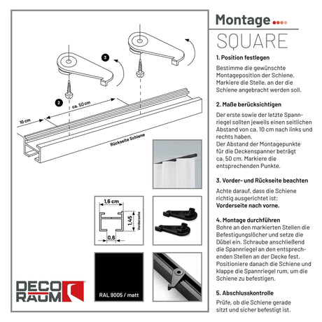Gardinenschiene Innenlauf auf Maß 1-läufig Schwarz - Serie Square