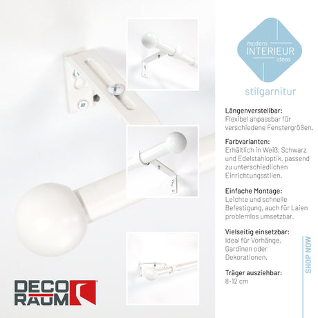 Gardinenstange ausziehbar Flexa Weiß Endstück Kugel 16/19mm