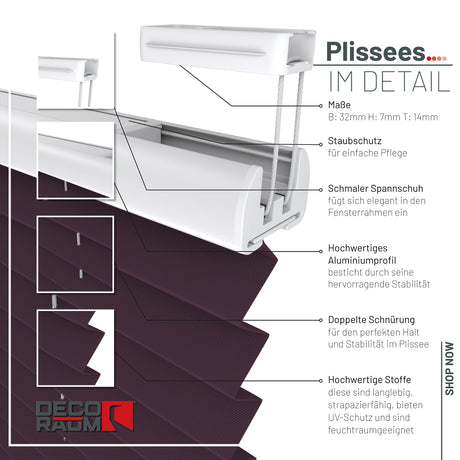 Wir haben erst ein Plissee bei Deco Raum und eines von einem anderen Anbieter bestellt. Nach dem Test haben wir sofort die von Deco Raum nachbestellt. Gute Qualität und vor allen Dingen einfach zu montieren. Das was der andere Hersteller geboten hat( Preis nahezu identisch) war, gelinde gesagt, eine Zumutung. Wie aufwendig kann man eine Befestigung konstruieren und dann noch ein schlechteres Ergebnis haben !